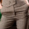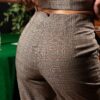 Μπεζ καρό γυναικείο ψηλόμεσο παντελόνι office.