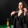 Μαύρο ριγέ γυναικείο μεσάτο σακάκι με δύο κουμπιά και εσωτερική φόδρα.