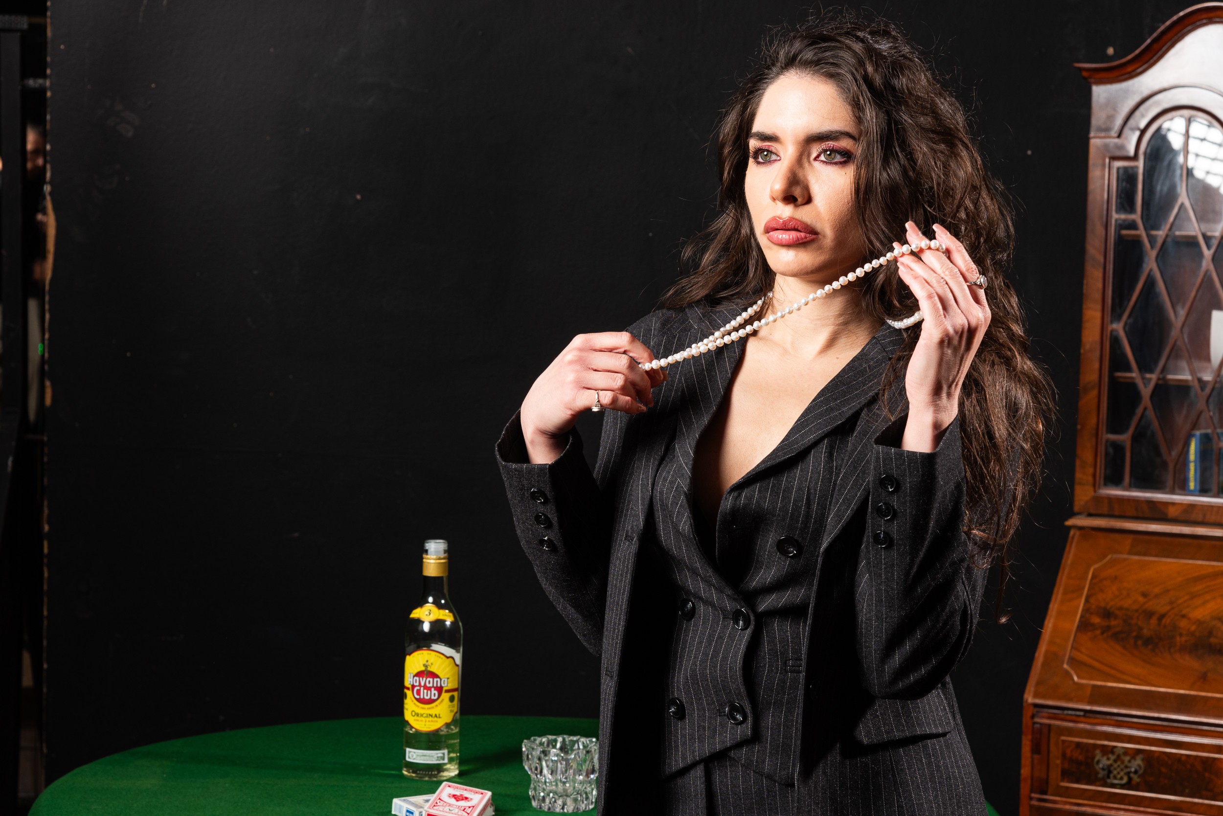 Μαύρο ριγέ μεσάτο σακάκι